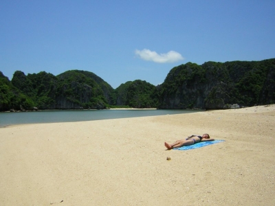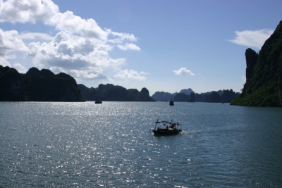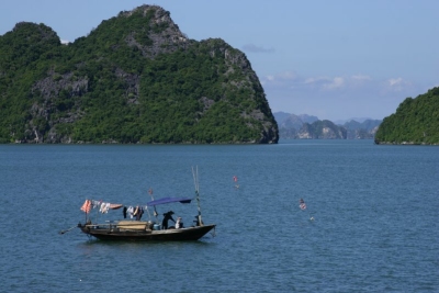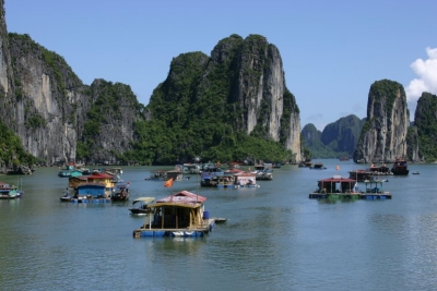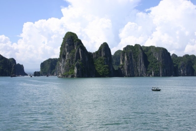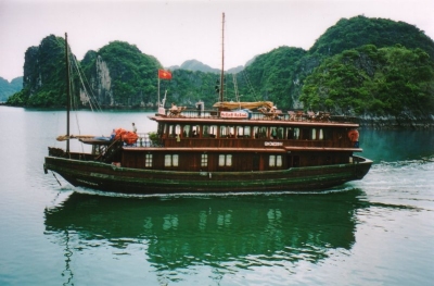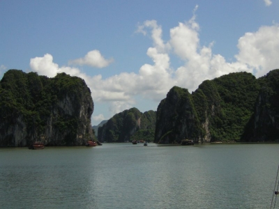 Ha Long Bay, in the Gulf of Tonkin, includes some 1,969 islands and islets, forming a spectacular seascape of limestone pillars. Its name means Bay of Descending Dragon and one of its main attractions is the bay's calm, clear water and sandy beaches. |