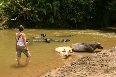 Swimming with water buffalo on a trek to Cat Cat |