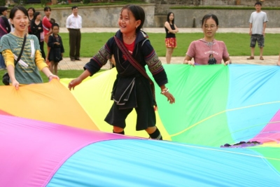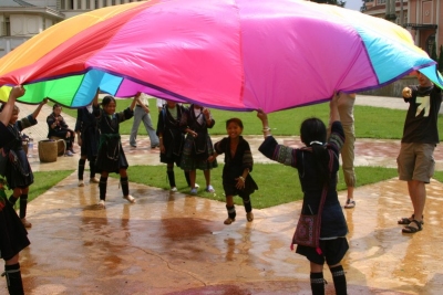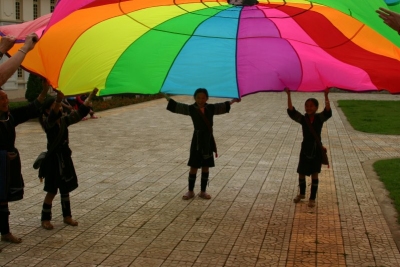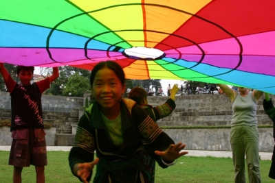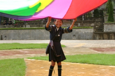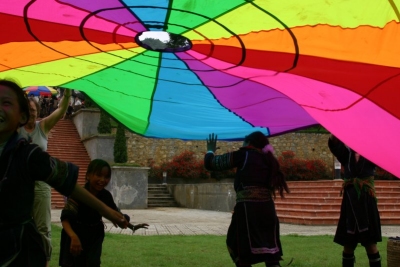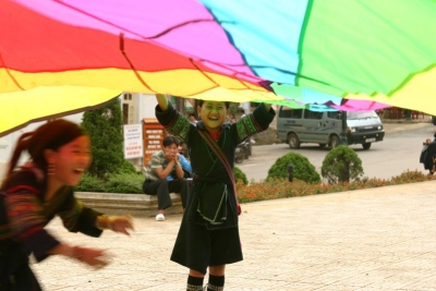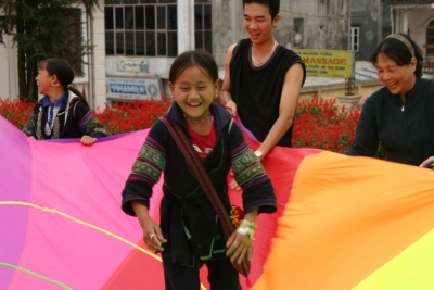 Playchuting with the H'Mong girls in the town |