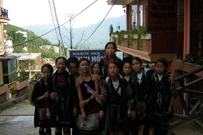 Sugar and the H'Mong girls outside the hotel |
