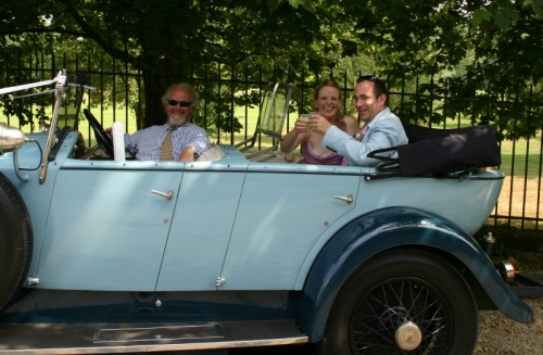 On the way out to the reception at Pam and Erik's place in Breville, we came across this old car which appeared to have broken down. Alas, it was only Jane and Gary enjoying a quiet sip or seven of champagne - no doubt fortifying their courage for the night ahead. |