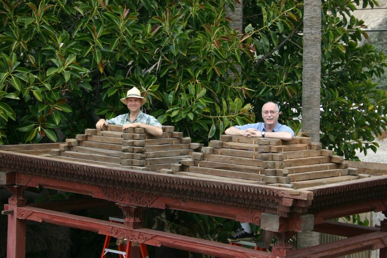 of the Joglo, a traditional Indonesian roof, at the entrance to his estate.