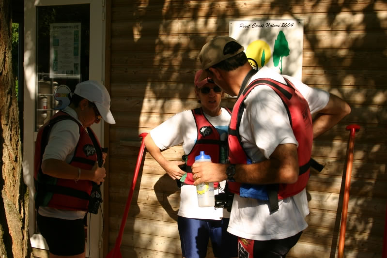 French Cycling Holiday - Paula, Mary and Jon preparing for canoeing