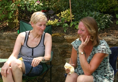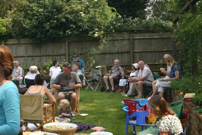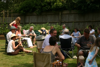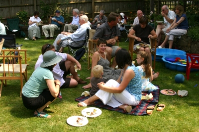 The crowd enjoying the glorious weather and Penelope's Plentiful Abundance of Fabulous Food. |