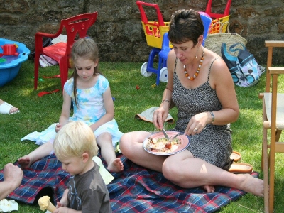 Jayne Gibson Harris, Eleanor and Owen enjoying the food. |