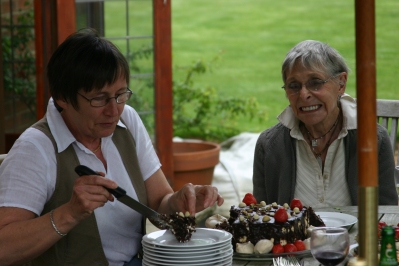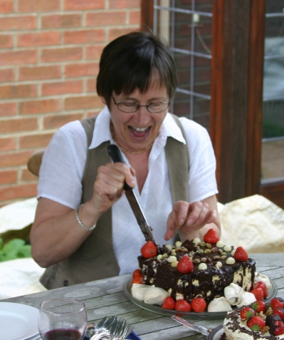 That didn't stop her laughing hysterically as she cut each tiny sliver and handed it around the table. | ![]() |