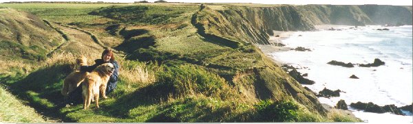 ![]() The lovely Penelope Playchute and friends on the cliff overlooking Marloe Sands. With the proximity of sheer drops you can understand why they are all clinging to one another.