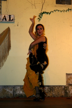 After visiting the Mezquita we did another bout of strolling through the old town exploring new alleys and courtyards and continuing the search for the restaurant of the day. Meanwhile, Pen had seen some leaflets advertising a performance of Flamenco dancing at the hotel so we found our way to the booking office to reserve a couple of seats for that evening’s performance. The gentleman in the booking office was very talkative and, after my halting efforts at communicating in Spanish had been acknowledged (and appreciated) we started a lengthy conversation about all manner of things. At one point our discussion touched on the attitude of youngsters today at the prospect of learning a foreign language. The agent lamented the fact that youngsters today simply did not apply themselves to their studies in the manner in which they should, in his view, and were always looking for a quick fix. In particular, he was dismayed by their relatively poor accents and we discussed how difficult it is for a native English speaker to make the appropriate sound for the “c” in gracias, for example. I guess most of us know that it is, in fact, a cross between the soft c or s sound and a “th” made with the tongue at the back of the teeth. In fact, of course, it’s a sound we do not have in English which makes it difficult to reproduce satisfactorily. After several attempts by me to pass muster on the “c/th” sound in Valencia and him correcting my accent, he finally remarked that youngsters could learn a decent accent if they were sufficiently determined – “Where there is a will, there is a way,” he said, “tu quoin a frase,” he continued. Now, Penny and I both thought he was attempting to teach us another Spanish phrase with immaculate pronunciation so Pen repeated, “Tu quoin a frase.” At this point, he repeated the phrase, “To quoin a frase” and she repeated it again. This “conversation” went back and forth each party seemingly trying to master the pronunciation and accent of the other. I can’t remember at what exact point the penny dropped or how many exchanges there had been by this time between Pen and our friend, but suddenly I realised what was happening and it took a monumental effort to prevent myself from laughing out loud. He was trying to say, “To coin a phrase” while Penny was trying to learn a new Spanish phrase. Each time she would repeat it, he was convinced that she was trying to help him with his accent and he tried to repeat it exactly as she was doing. However, she was trying to repeat it exactly as he was doing so they were gradually going around in circles, each time getting further and further from the original intent of the discussion. Finally, I had to interrupt the lesson and correct them both. “Oh, ‘to coin a phrase’ is what you’re after.” We shared much amusement for the rest of the trip (and, indeed, in the weeks since) at the services we were able to render to Iberian-Anglo understanding.