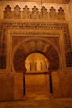 The Mezquita is quite simply stunning. (Pen says I am over-using the term “stunning” so I need to consult the thesaurus). The Mezquita is quite simply astonishing, startling, amazing, remarkable, dramatic, eye-catching, striking, dazzling, beautiful, gorgeous and, indeed, stunning. It is, of course, Cordoba’s great mosque which dates back to the eighth century and was once apparently the second largest mosque in the entire Moslem world. It started off with room for some four thousand of the faithful and, after subsequent enlargements over two centuries, ultimately had space for forty-thousand worshippers, each with his own prayer mat, kneeling and praying amongst the most wonderfully beautiful columns and pillars. The colour and light is magnificent and one can easily imagine the feeling of calm and serenity which one would have felt (and still does) when entering the building. Not surprisingly, when the Christians recaptured Cordoba they set about destroying the Moslem influence by dumping a monstrosity of a Catholic church smack in the middle of the mosque, clearly intending to subjugate the Moslems with the almighty power of the Catholic monarchy. Initially, there were a couple of chapels built and, of course, the Mosque was re-consecrated as a Catholic church. However, the most significant alteration was the construction of a Renaissance cathedral nave in the middle of the structure and it is this which so destroys the beauty, balance and serenity of the place. It was constructed by permission of Carlos V; once he saw what had been built, he supposedly exclaimed, "You have built what you or others might have built anywhere, but you have destroyed something unique in the world." It seems true, however, that the conversion of the mosque to a Christian church may have helped to preserve it when the Spanish Inquisition was at its most active and it is apparently well known that the locals, old Christians and converts alike, vehemently protected the monument after the city was regained by the Christian kings. Equally disquieting, I suppose, as the destruction of a beautiful building is the disgraceful opulence displayed in the treasury; at a time when the bulk of the population was living a subsistence existence much of the time, the wealth accumulated and displayed so grotesquely by the Church was (and is) simply obscene.