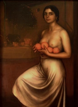 Following our animated and enlightening conversation with the “ten a day” man, we left Ronda at about 11.00 on our way to Cordoba. Eschewing the motorway and the main roads we travelled through some spectacular mountain scenery giving way to gentle rolling hills with wide vistas of olive groves as far as the eye can see. My goodness, there are a lot of olive trees in this part of the country! By the time we got to Aquilar de la Frontera, we were in need of some sustenance and the car was in need of some petrol so, having topped up we drove through the town looking for a place to have a bite to eat. After no time at all we stumbled across a very pleasant bar/café with a patio underneath some orange trees and we joined seemingly the whole neighbourhood out for Family Sunday Special. The place was packed and everyone was drinking, eating and talking vigorously while passing babies back and forth to be admired, cuddled and pinched. This would appear to be a regular Sunday occupation, presumably after Mass and, while the parents were not necessarily dressed as one might expect, all the children were clearly kitted out in their "Sunday Best” and everyone was clearly having a most pleasant early afternoon. Pen discovered "Albondigas" on the menu which reminded her of an occasion in both our dim and dusty collective memories when Aunt Lucinda made some albondigas soup which was enjoyed as much then as we enjoyed this Andalusían variety. And so, feeling suitably refreshed and replenished, we proceeded on our way to Cordoba, eventually arriving about 3.00. We parked the car somewhere near the centre of town and set out on foot looking for some suitably comfortable yet inexpensive hostelry for a couple of nights, eventually making our way down into the old part of town and discovering the Hotel Mastre which seemed appropriate for our needs. After settling our bags in the bedroom we set off on a brief stroll along the river to get our bearings ready for some serious sight-seeing in the morning. In particular, we were looking forward to the Mezquita and the Alcazar de los Reyes Cristianos (the Palace of the Christian Kings). The old town in Cordoba is wonderful – narrow alleys, courtyards and whitewashed buildings amongst which one can easily spend the occasional hour or so wandering aimlessly, which we managed effortlessly. After a most pleasant afternoon and evening, strolling and sight-seeing we found some places to indulge in some tapas and, after much debate, discussion and disagreement, eventually a restaurant for an evening meal and back to bed. Unfortunately, Spain tends to close down on Mondays so although the Mezquita was open, the Alcazar and a couple of other places we had intended to visit were not. I was particularly disappointed not to be able to visit the Museo Julio Romero de Torres (http://www.museojulioromero.com/index_firma.htm#). While I hadn’t been familiar with his work beforehand, Pen showed me a couple of postcards of his work and, in particular, his Naranjas y limones is a fine example of a young maiden demurely displaying some of her best assets alongside some oranges.
