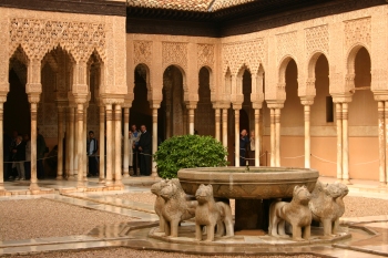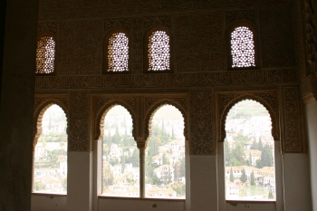 After spending several hours wandering around the Alhambra, we made our way up the hill to the Generalife, the private gardens of the sultan. Here the buildings are considerably plainer – no one of any importance ever was allowed up here; all the important diplomatic and official work took place in the Alhambra, particularly in the Salón de Embajadores – the Hall of the Ambassadors (which is where Columbus,apparently, was given the go-ahead for his voyage to the Indies by Ferdinand and Isabella). The Generalife has wonderful gardens, however, again with lots of fountains and trickling water. Finally, after another hour or so we made our way back down to the Alhambra and bought a copy of Washington Irving's “Tales of the Alhambra” which, once one gets over the somewhat flowery language, is very entertaining. A quick lie down in the hotel before another wander around the Albaicín and dinner at an Arab restaurant we had espied the night before – delicious.