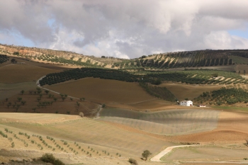 So, we set off from Cordoba at some point in the morning and, again, took the smaller roads toward Granada. Rolling countryside and olive groves predominant throughout this part of Andalusía, it would seem – very pretty. About 11.00 or so we arrived at a town called Montefrio which is described as the archetypal Andalusían town and which is very pretty indeed, fabulous views of tiled rooftops and white-washed houses which run up to a steep crag on top of which is perched some Moorish fortifications. Naturally, the Christians erected a church on top of the Moorish stronghold to demonstrate their dominance. As we climbed toward the church on the top of the hill we were surprised to see a Calle de Washington Irving – i.e., Washington Irving Street. I had not known that he was especially well-known in this part of Spain nor, indeed, that he had any connection with the country. However, we were to discover that he had indeed travelled all over Andalusía and, in particular, wrote about the Alhambra in Granada in a book published in about 1832 – Tales of the Alhambra. It seems that he was American ambassador to Spain during the administration of Martin Van Buren and, in between fulfilling his official functions, travelled throughout the country and ended up staying in the Alhambra for about three months.
