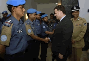 Monrovia, Liberia - “Our goals for the LNP [Liberia National Police] are being realized because of your hard work to make it a more adaptive and competent police service,” said UN Mission in Liberia (UNMIL) Officer-in-Charge, Mr. Jordan Ryan, during a recent ceremony to award UN peacekeeping medals to members of the Bangladeshi police contingent. |
