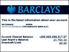 11 January 2009 Whew! It is cold, cold, cold! Nothing, I guess, compared to what those of you on the East coast are used to experiencing but for us, in the alleged shelter of the Gulf Stream, it is cold! Over this past week the night time temperature has been hovering down around -10 Celsius (apparently, about 14 degrees Fahrenheit) and the daytime highs have been all the way up to the balmy heights of zero. In addition to the (for us) Arctic conditions, we’ve had thick fog over the past couple of days so that the frost has decorated the trees and shrubs with a bright white icing. The garden pond has been frozen for the past week much to the consternation and annoyance of the neighbourhood wood pigeons and other local wildlife who are consistently perplexed by their inability to get a drink out of what after all does resemble a pond. AND, Ms Playchute is demanding that the radiator in the bedroom be turned on! I guess it's cold. After the excessive enjoyments of the Christmas break, this week has been a model of decorum and modesty. What a relief it is to get back to work! (Just kidding, don’t worry). Ms Playchute and I have made our picks for this weekend’s football matches. I’ve not yet watched the recording of last night’s games so don’t tell me the score! Last week her only winning selection was the Cardinals over the Falcons but her rational is flawless – last week she wanted to ensure that she a collection of different entities so she had a bird (Cardinals), a horse (Colts), a person (Vikings) and a fish (Dolphins). To be fair, she had to stretch the last one because, as we know, a dolphin is not actually a fish but it was close enough for her. This week she has the Eagles (a bird), the Titans (a mythological deity), the Chargers (what the heck are they – a lightening bolt?) and the Cardinals (again). I have the opposite so we’ll see. I know we’re all having to cope with the fallout from the current financial crisis but how would you like to have been on the receiving end of a letter from your bank informing you that you were just short of 100 billion pounds overdrawn as in the following: