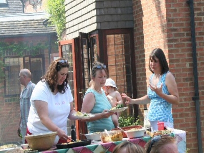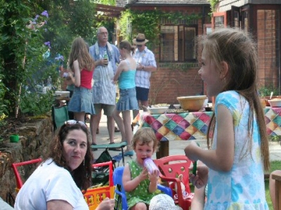 Jayne Gibson Harris, Eleanor and Owen enjoying the food. |
