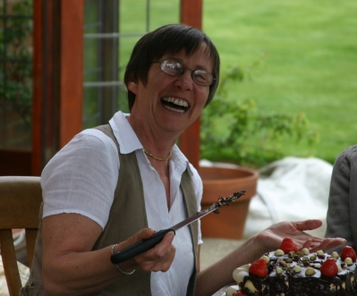 That didn't stop her laughing hysterically as she cut each tiny sliver and handed it around the table. | ![]() |